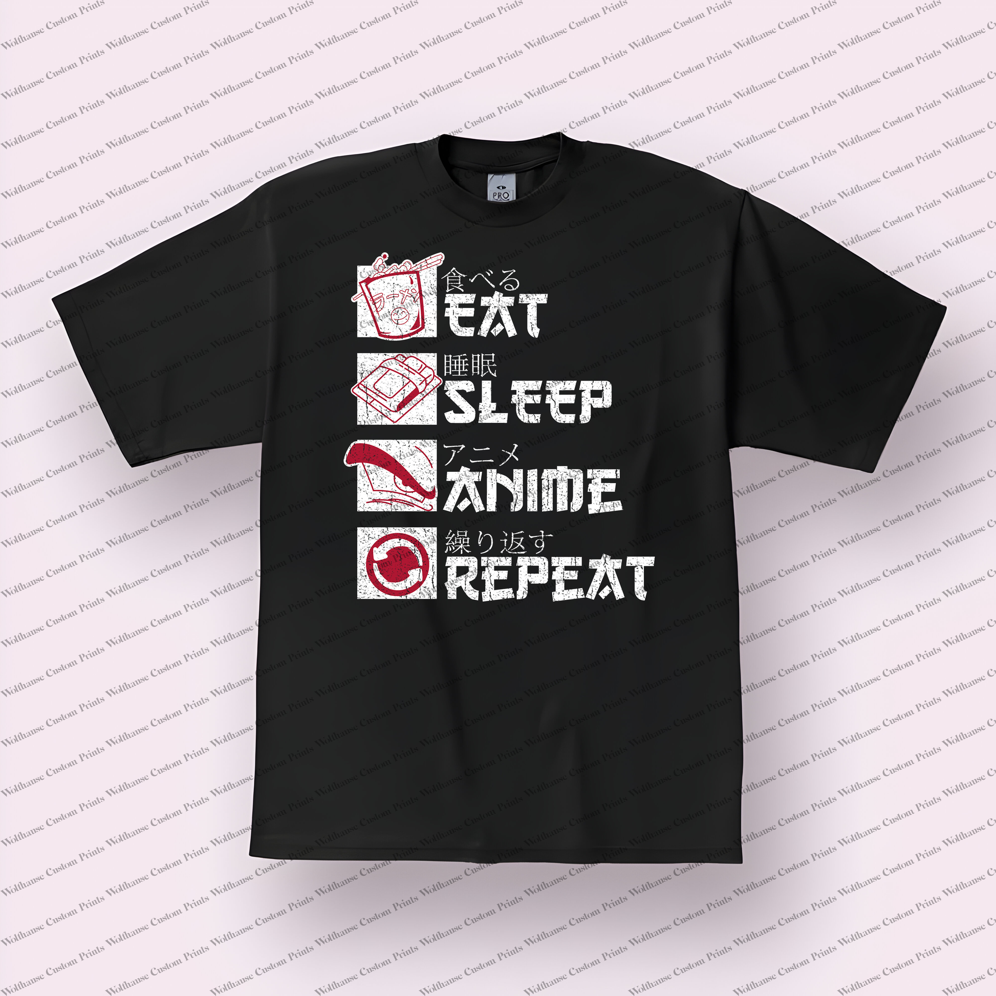 Eat Sleep Anime Repeat Distressed Design Graphic Tee